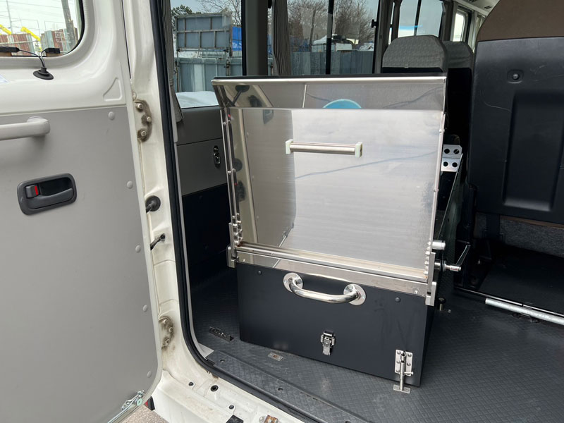 搭載例 レールが旋回する事で、お遺体を車輌に乗せやすくします